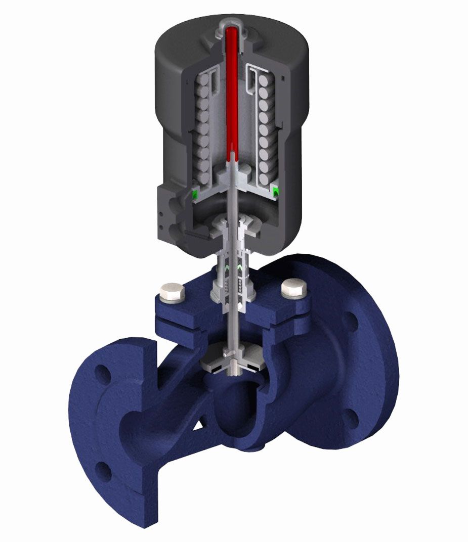 La forma a Y del corpo valvola garantisce valori del coefficiente di portata Kv superiori agli analoghi corpi a flusso avviato.